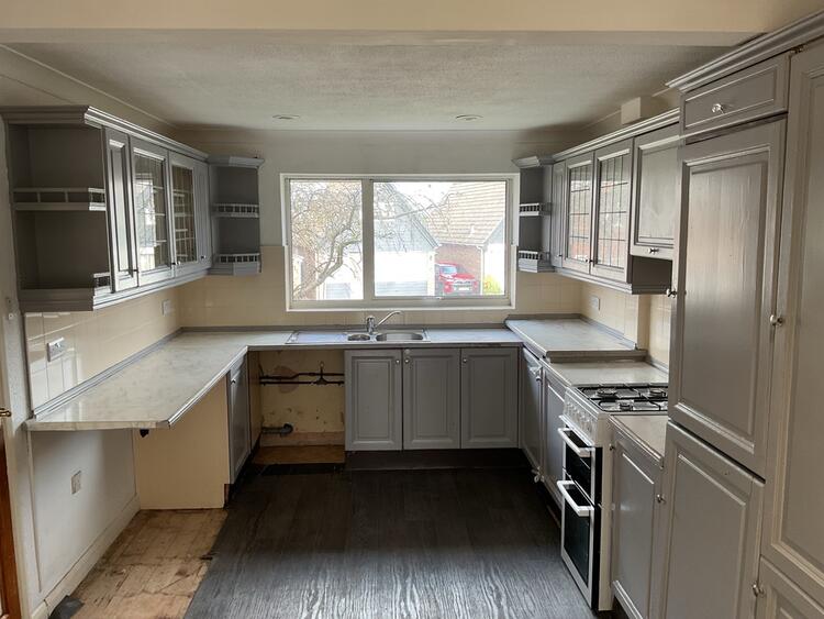 The dining kitchen is fitted with a range of base and eye level units with roll edge work surfaces incorporating a stainless steel one and a half bowl sink drainer with mixer taps and splash back tiling, space for appliances, dining area, radiator, uPVC double glazed window to the front, vinyl flooring and a glazed entrance door opens onto the side.