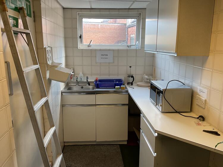 Ground floor commercial space and four serviced offices above along with two shared kitchens and three shared WCs.