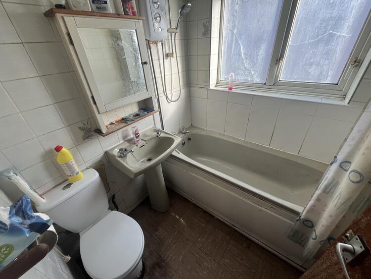 Having low flush w.c. wash hand basin and panel bath with shower over. <br>Window to side.