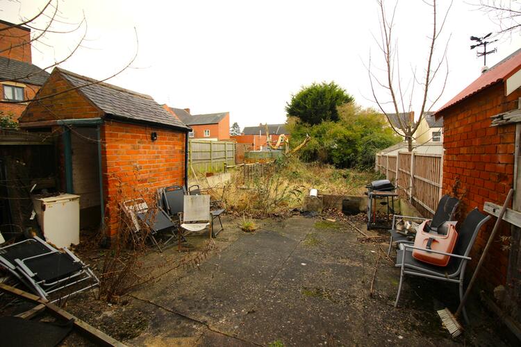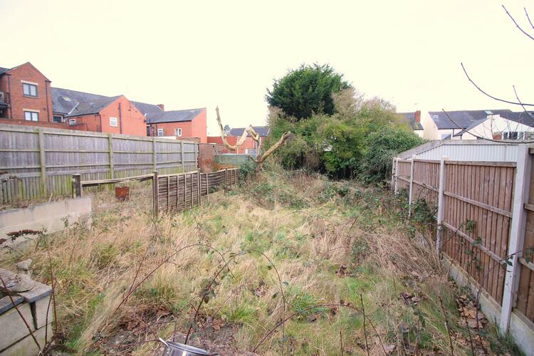 The front is a walled-in garden with pedestrian access to the side of the house leading to the rear garden. There is a yard area surrounding the rear elevation and the main garden is overgrown.