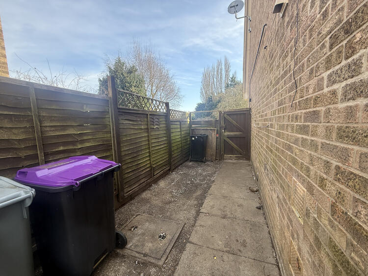 The layout of the property includes an entrance leading to the lounge, a kitchen/diner with access to the rear garden, two double bedrooms, one single bedroom, and a family bathroom. The exterior offers a driveway for two cars and gated access to a sizable enclosed rear garden.