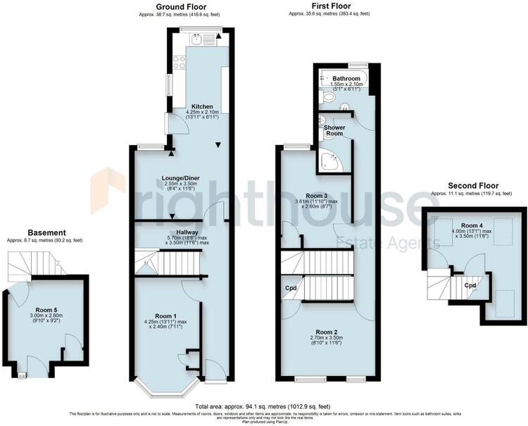 * Shower Room (7ft 1 x 3ft 10)