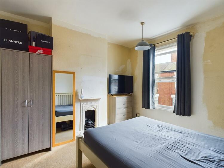 With chimney breast with period display fireplace, deep skirting boards and architraves, high ceiling, radiator, double glazed window to rear and internal panelled door.