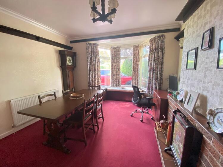 15ft 8 into bay x 11ft 11 (4.78m into bay x 3.63m). An attractive bay windowed dining room with fireplace and tiled hearth, UPVC double glazed windows and bay seat, picture rail, radiator.
