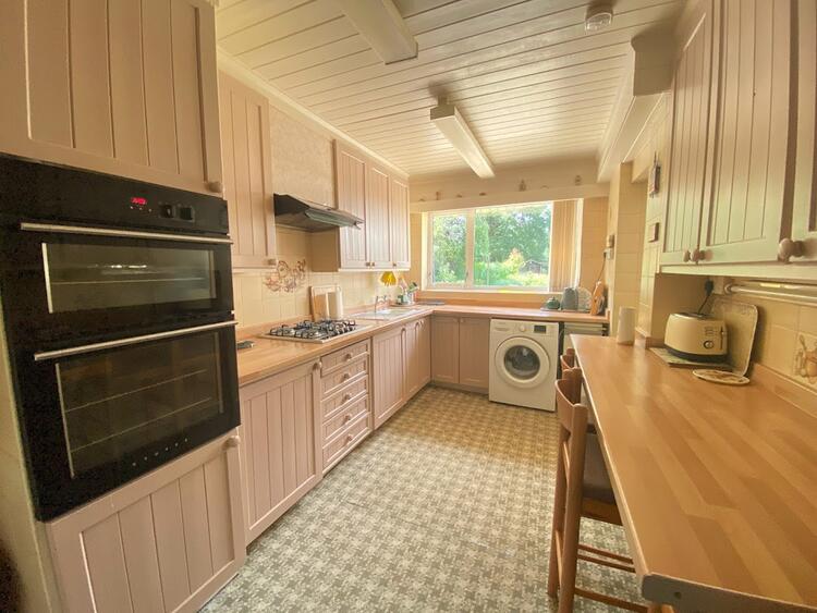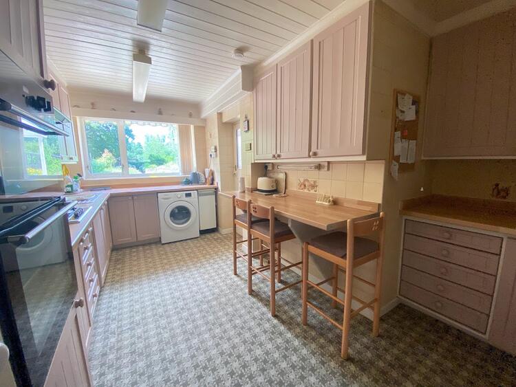 17ft 7 x 8ft 2 (5.36m x 2.49m). A spacious kitchen with fitted breakfast bar and well fitted with a plentiful range of wall and base units with matching cupboard and drawer fronts, laminate work surfaces and tiled splashback, built in double electric oven and gas hob with extractor fan, space for all appliances, stainless steel sink and drainer, UPVC double glazed window and radiator.