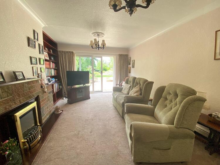 17ft 8 x 11ft 11 (5.38m x 3.63m). A spacious reception room with sliding doors to the garden, fitted bookcases and cupboards, brick fireplace with inset electric fire, media connections and radiator