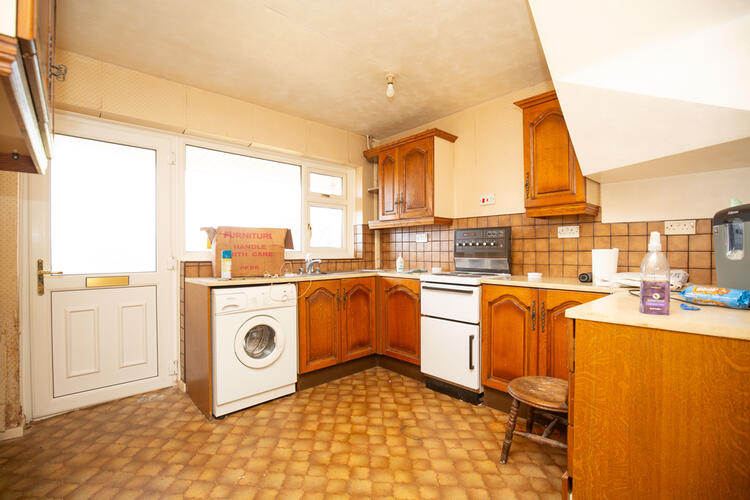 Having an opaque double glazed entrance door, double glazed window to front aspect, fitted base and eye level units, roll edge work surfaces, space and point for an electric cooker, stainless steel sink, tiled splash back areas, single panelled radiator and a door to the lounge/diner.