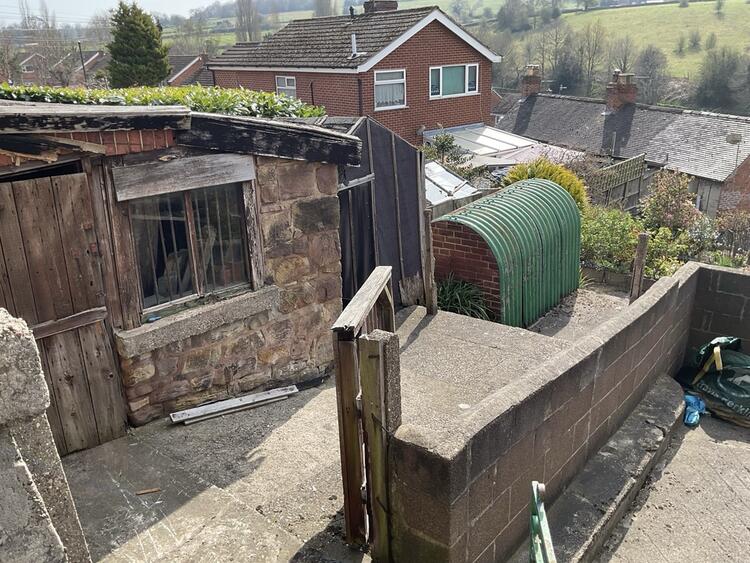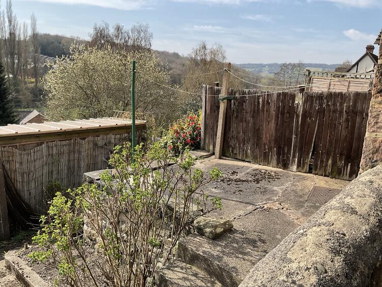 Small fore court with path to the side ideal for bin storage. To the rear there is a south facing generous sized tiered garden with outbuildings and fine views.
