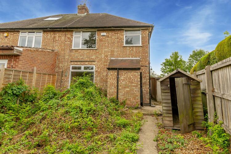 To the front there is a garden with driveway leading to the detached garage and a pathway providing side access to the rear garden. To the rear is a private garden with mature shrubs and fenced boundaries.