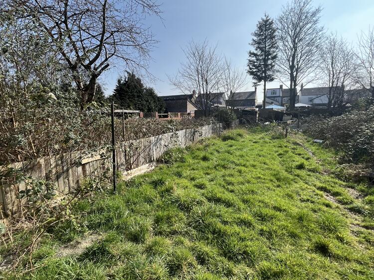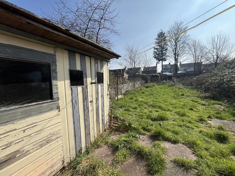 Good size rear garden which is mainly laid to lawn with timber shed.