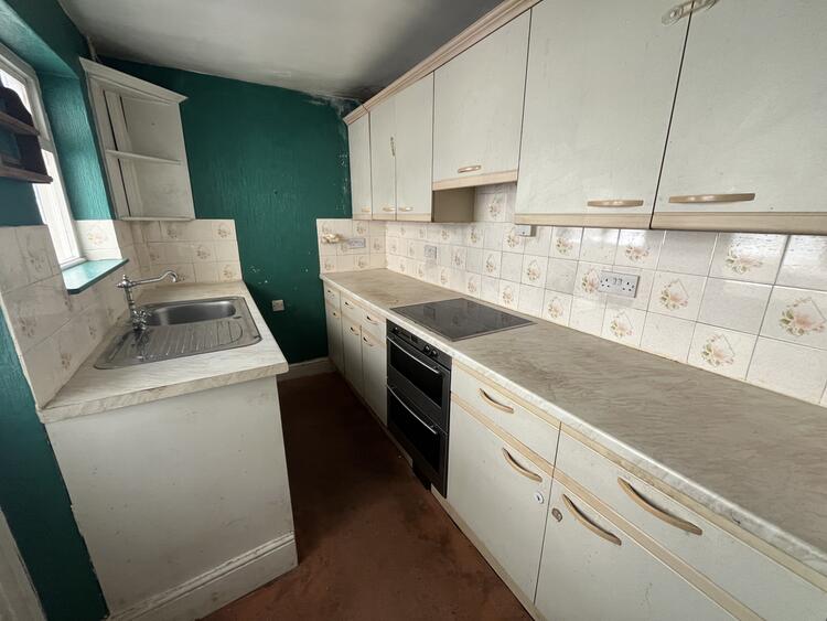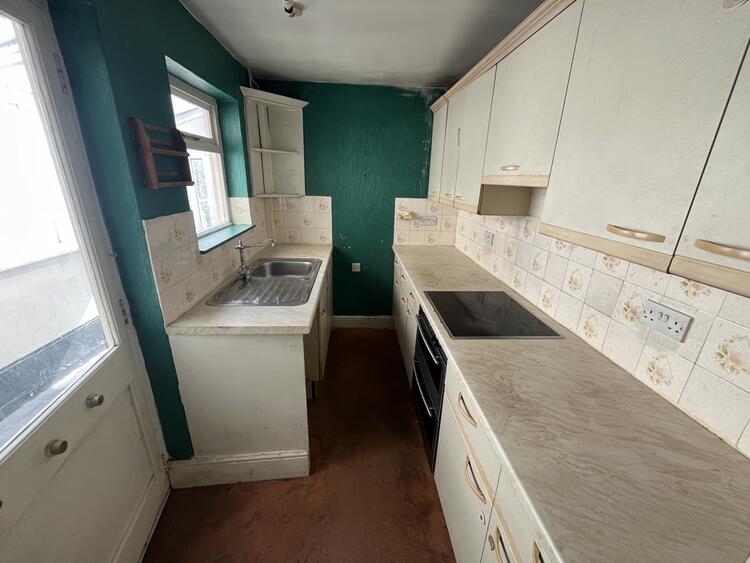 With base and wall units, sink, work surfaces, built in oven, hob and extractor, window to side and door to lean to.