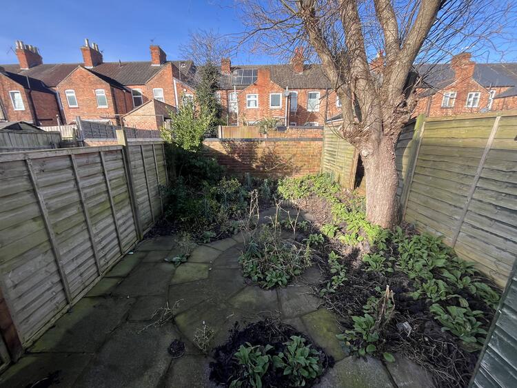 From the front a shared side passage leads to a pleasant rear garden having flagstone patio and seating area, stoked borders and being enclosed by wood panel fencing and brick walling.