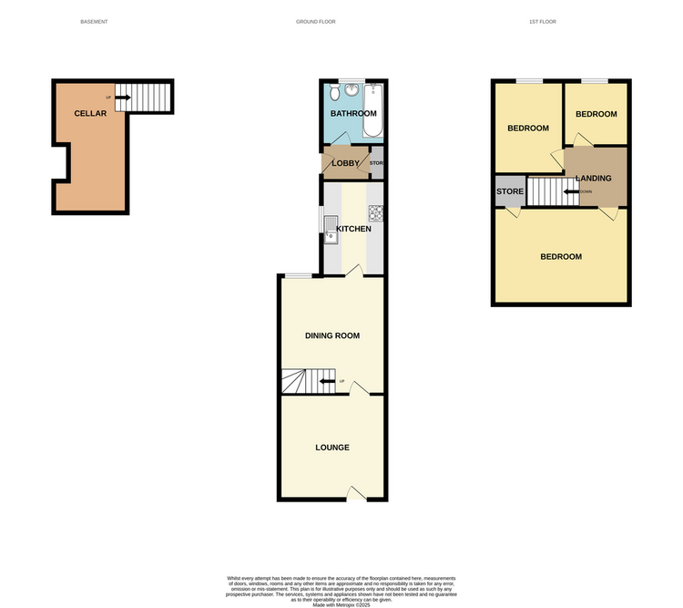 Two reception rooms, 3 bedrooms, cellar and enclosed garden.