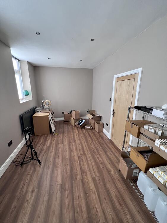Entrance reception, two large open-plan offices, additional office, kitchen, two WCs.
