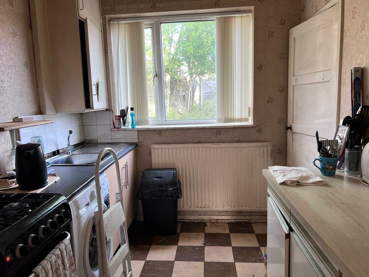 3.13m x 2.09m. Kitchen units, Stainless steel sink. Gas cooker point. Radiator. uPVC double glazed window.