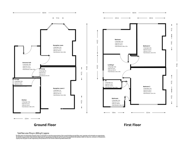 In summary, the property includes a front porch leading into a hallway that provides access to two well-sized rooms and the kitchen. The first floor comprises three additional double rooms, along with a bathroom and a separate WC.