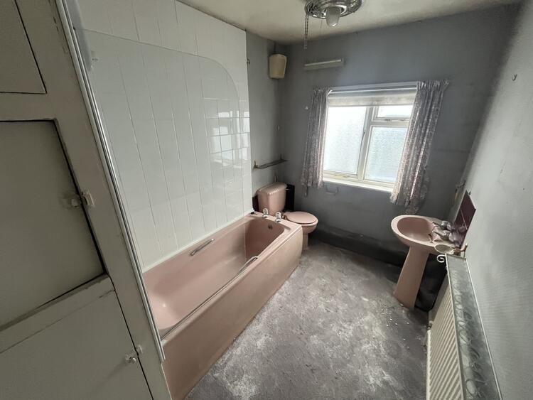 With 3 piece suite comprising low flush w.c. wash hand basin and panel bath with electric shower over. <br>Radiator, airing cupboard and window to rear.