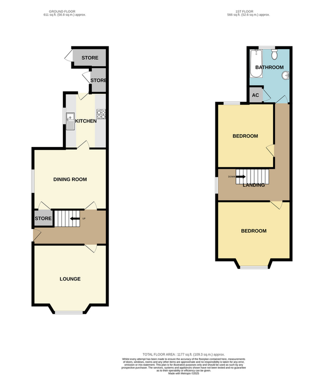 Hallway, two reception rooms, kitchen, landing, 2 bedrooms, bathroom, attached store and w.c along with driveway and garage.