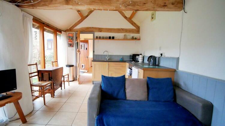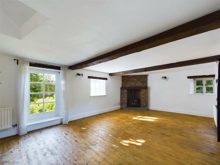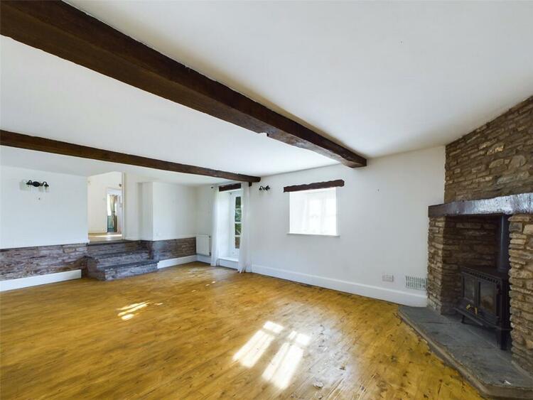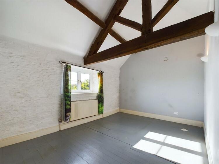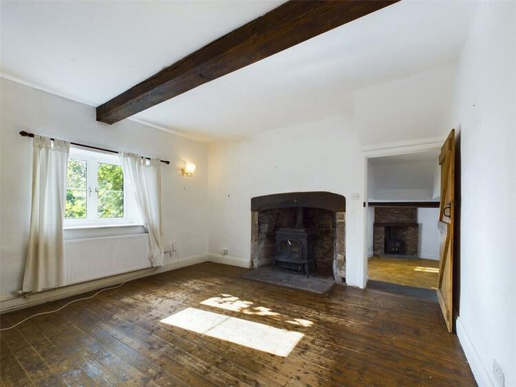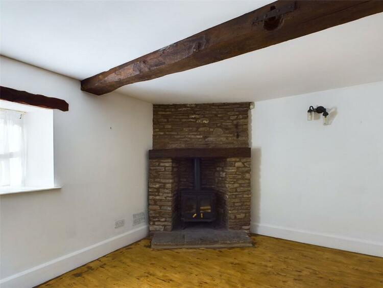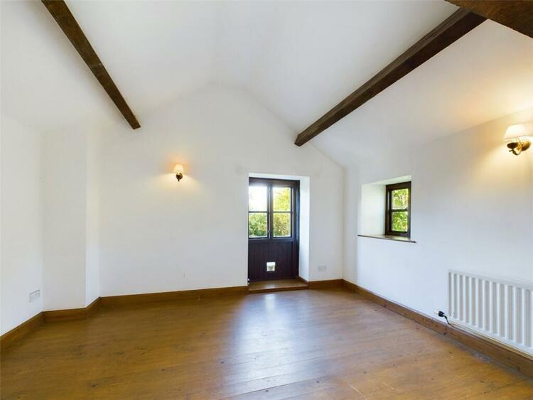 Exposed A frame beams. Painted stone feature walls with flagstone hearth and oak mantle over. Double glazed window to front aspect with lovely views. Radiator. Pitched pine flooring.