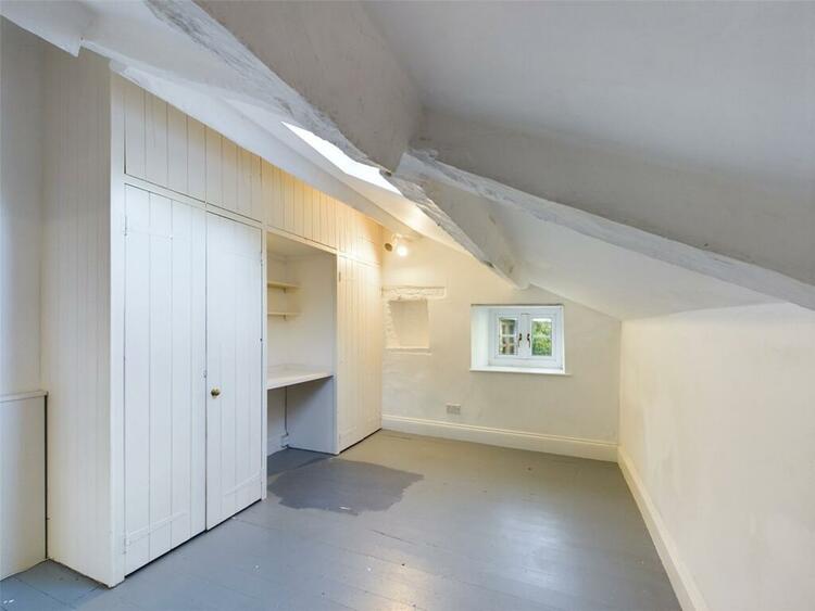 Built in storage cupboard. Velux window to front aspect. Exposed ceiling beams. Steps leading down to: