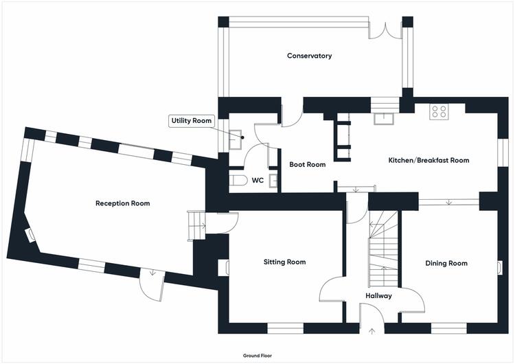 Door through from kitchen/breakfast room. Quarry tiled floor, staircase to first floor. Panel door access under the stairs to basement housing oil fired boiler.