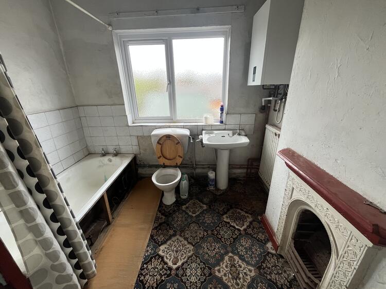 Having low flush WC, wash hand basin and panel bath. Wall mounted boiler, original Cast Iron fireplace and window to rear.