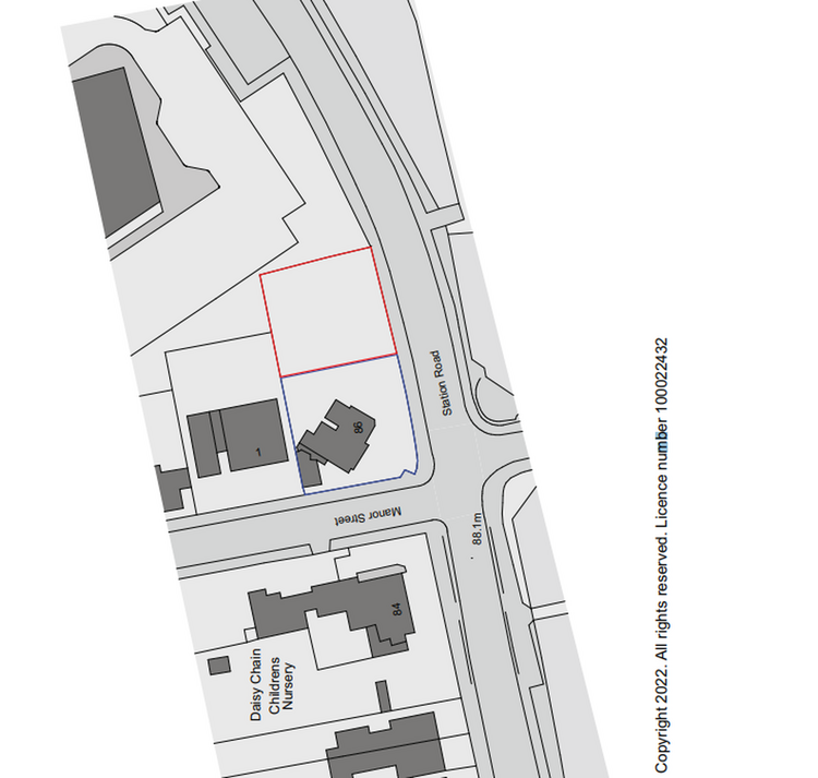 The land is located to the side of 86 Station Road, Wigston and already has its own access point.