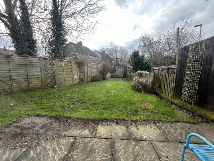 Driveway to side. Enclosed garden with lawn and stocked flower beds.