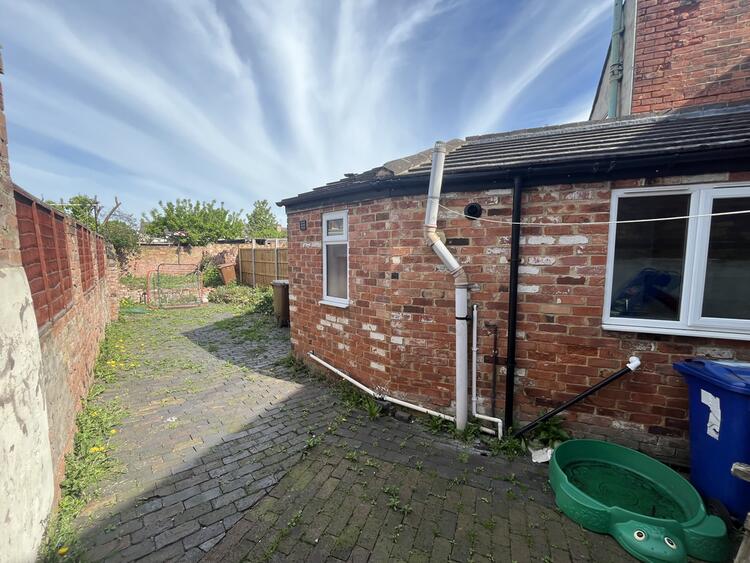 Drive through / Garage with double doors to front. Offering parking or potential to turn into further accommodation. Enclosed rear garden with large paved seating area and stocked borders. Enclosed by brick wall and wood panel fencing.