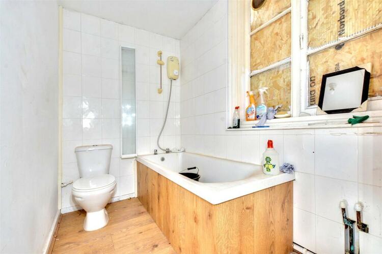 The ground floor comprises two large reception rooms, the front enjoying a bay window that adds both light and character. To the rear is a generously sized kitchen space with existing plumbing and gas connections in place, ready for a full fit-out. Adjacent is a ground floor bathroom, also with plumbing and gas points already installed.