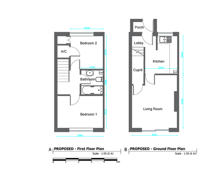 The current house comprises- Lounge, Kitchen, Landing, 2 Bedrooms, Bathroom. Gardens to front side and rear.