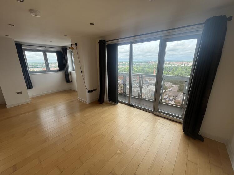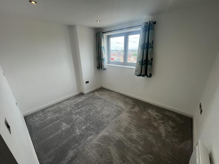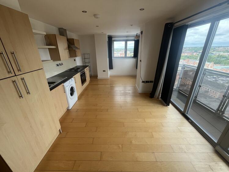 6.35m x 3.70m With a modern range of base and wall cupboards, built in oven, hob, extractor. Sink unit and roll top work surfaces. Electric wall heater. Lounge area with patio doors to balcony and dining area with window to two aspects. The views from the apartment are stunning! With the city from one aspect and Abbey Park and as far as Bradgate Park from the balcony.