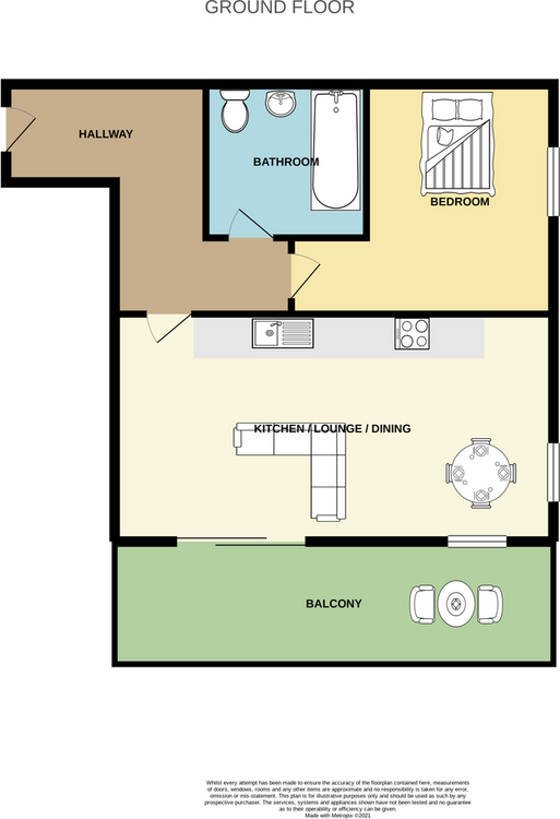 Hallway, Lounge/ Kitchen/ Diner, Bedroom, Bathroom, Balcony.