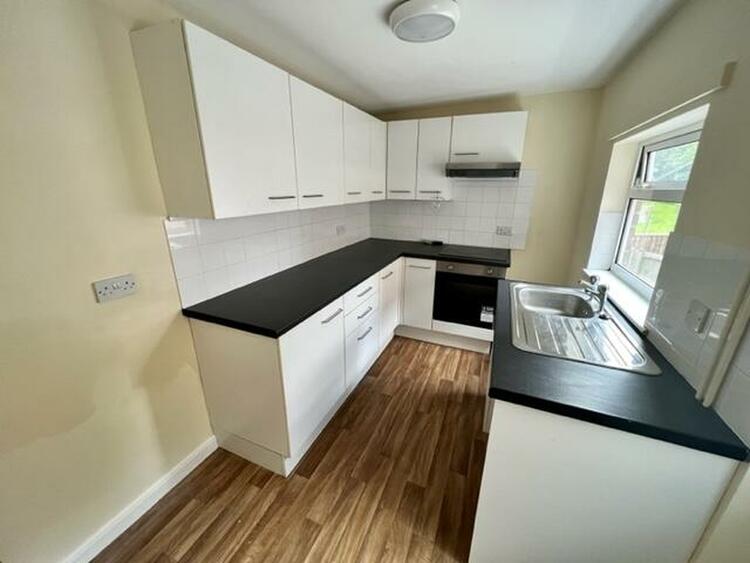 With fitted wall and base cupboards, roll top work surfaces, stainless steel sink and drainer, integrated electric oven, hob, and extractor hood, tiled splash backs, uPVC double glazed window and rear access door, space for washing machine. Electric storage heater.