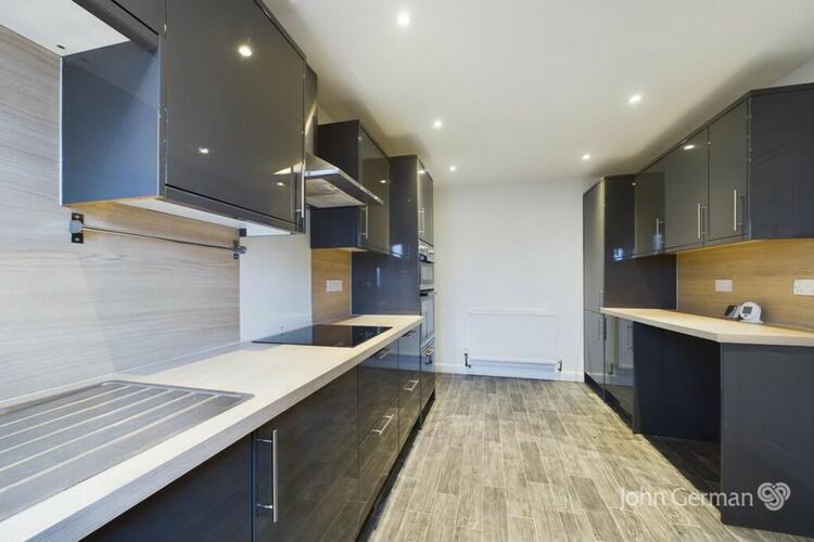 Entrance into the property is via the side entrance door which opens in to a smart modern breakfast kitchen fitted with a range of dark grey high gloss base and eye level units with worksurfaces incorporating a breakfast bar, inset one and a half bowl stainless steel sink unit with flexible hose mixer tap, co-ordinating splashbacks, integrated double oven, integrated fridge, integrated induction hob with extractor over, plumbing for washing machine and dishwasher. Doors lead off to the lounge and the inner hallway.