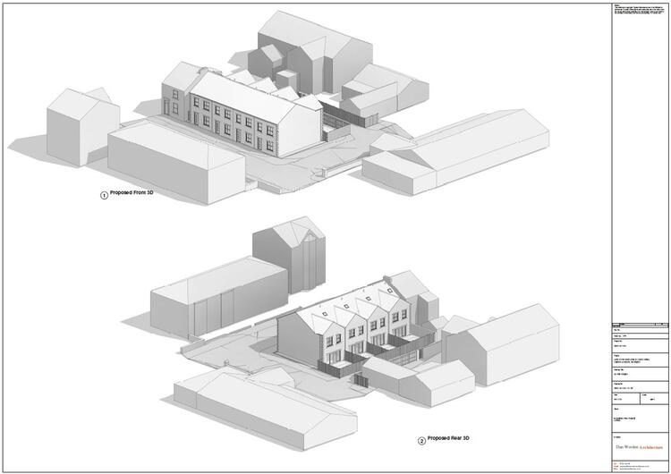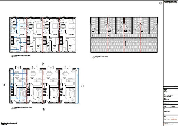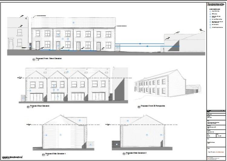 The site extends to approximately 0.4 hectares (415 sqm) and benefits from full planning permission for the construction of four new three-bedroom terraced houses. Each unit is designed to offer 108 sqm of well-planned living space, including a generous kitchen/dining area, a downstairs WC, and an en-suite to the master bedroom.