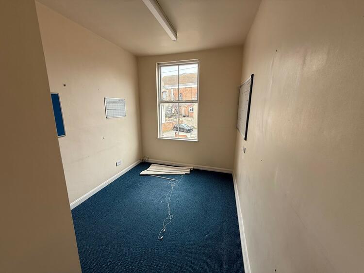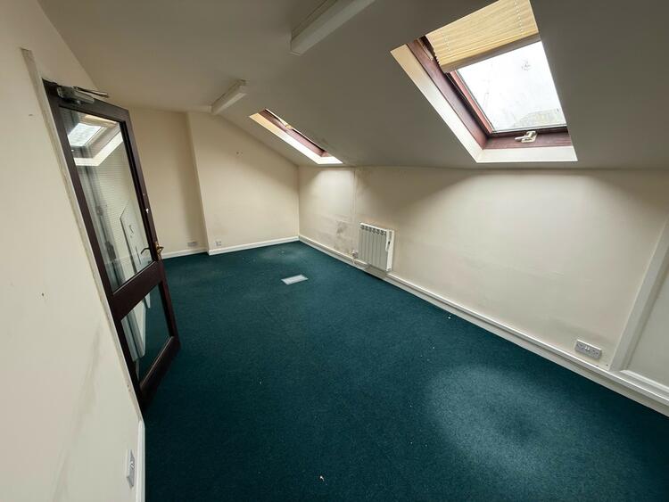 The ground floor comprises two offices with kitchen and WC facilities. A central staircase leads to the first floor with 3 offices and WC. The second floor comprises two offices.