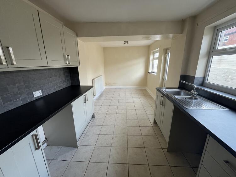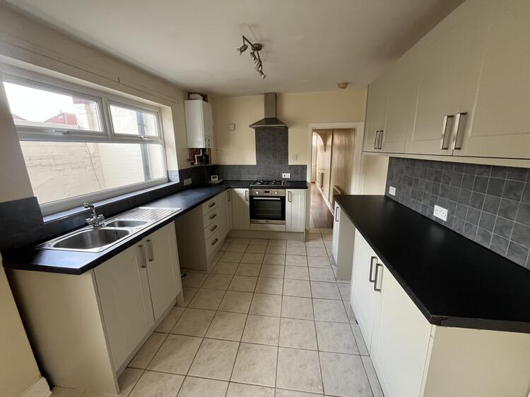 With a modern fitted kitchen with integrated oven, hob and hood, work surfaces with inset sink, tiled flooring, space for table and chairs, wall mounted combi boiler (approx 6 months old) two windows to side and door to rear garden.