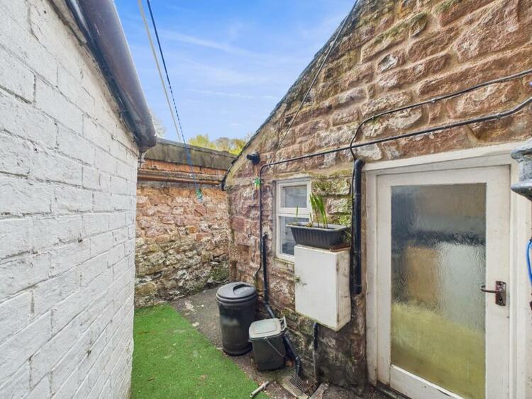 To the left hand side of the shop (36 Market Place), a pink wooden gate opens to a side alley way, which in turn provides access to 36A Market Place, the three storey cottage. A side aspect part glazed door opens into the: