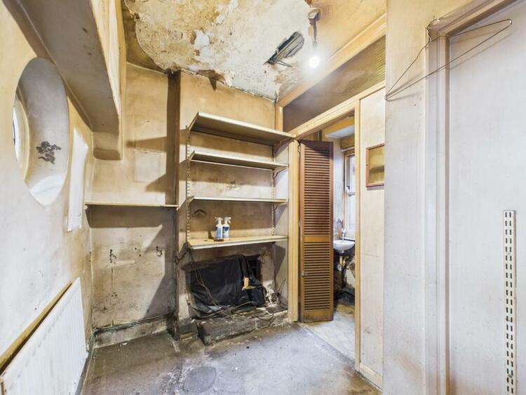 The ideal space for storage or an office with a front aspect circular feature window, fitted shelving and what would have been the original fireplace. One door opens to a handy under-stairs storage cupboard and a bi-fold door opens into the: