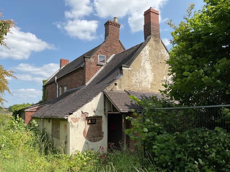 The brick built farmhouse requires full renovation and is set well back from the road accessed via a shared driveway with the neighbouring property, The Cottage (located to the left hand side). The land fronts the A610 and is mainly overgrown.