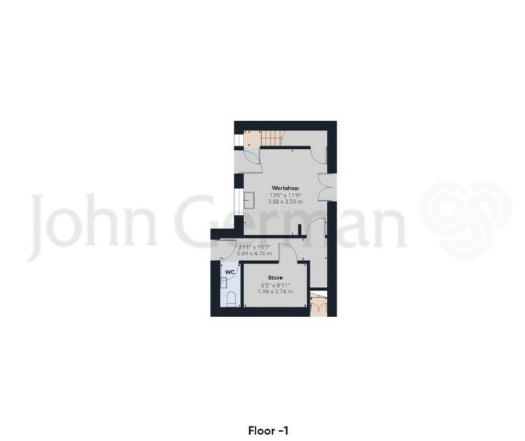 The front entrance door opens into a hall where stairs lead down to the basement level that is divided into a large workshop, store and guest WC. Doors open out to the rear garden.