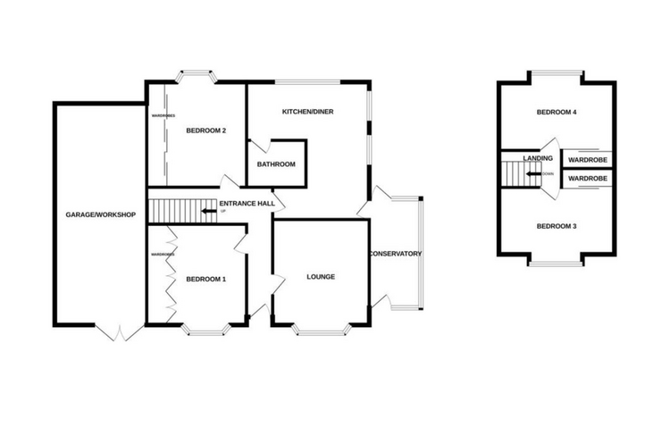 A four-bedroom detached chalet offering spacious accommodation throughout with huge potential. The property requires a complete refurbishment, providing an excellent opportunity for buyers to put their own stamp on the property. Split over two levels, the property has four double bedrooms, plenty of living space, a large garage and gardens to the front and rear with a in/out driveway.