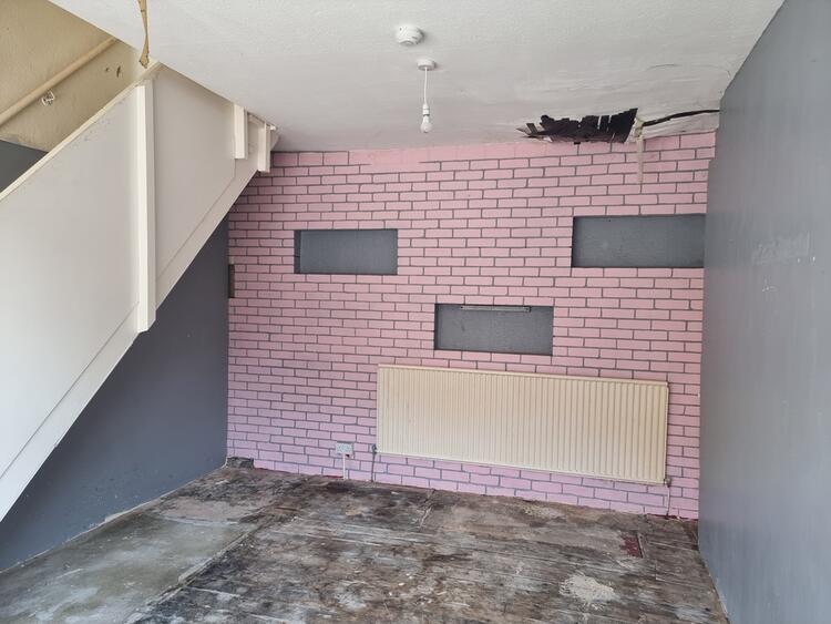 UPVC double glazed window, radiator, stairs, understairs storage cupboard.