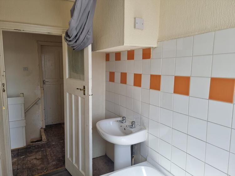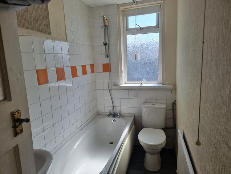 Fitted with a white suite comprising panelled bath, pedestal wash hand basin, W.C - low suite, part tiled walls, UPVC double glazed window, radiator.