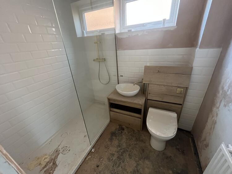 The property had a full scheme of modernisation but then suffered a burst pipe in the loft space. Therefore finishing works such as boarding ceilings, refitting of kitchen and bathroom, flooring etc require attention.