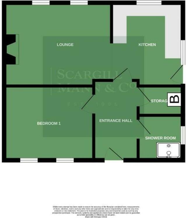 Accommodation offers a spacious entrance hall, an open plan lounge and kitchen to the rear, a good-sized double bedroom and a shower room.