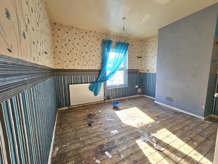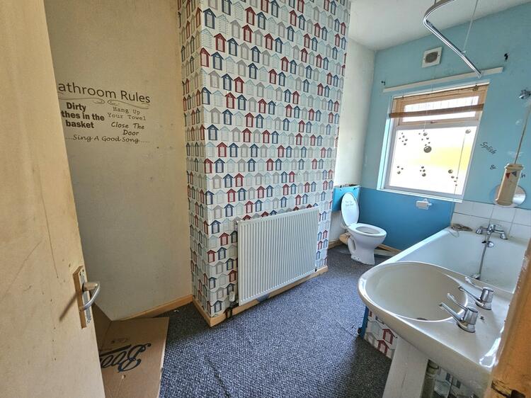 The domestic hot water and central heating boiler is housed here with base cupboards and drawers and wall-mounted cabinets. Worktops are inset with a stainless steel sink and side drainer. There is space for a cooker, fridge and freezer. Two windows look out to the side and there are tiled splashbacks. We are informed by the seller that the kitchen floor tiles contain asbestos and the risk category is C - monitor and manage. Please see the Legal Pack for further details.
