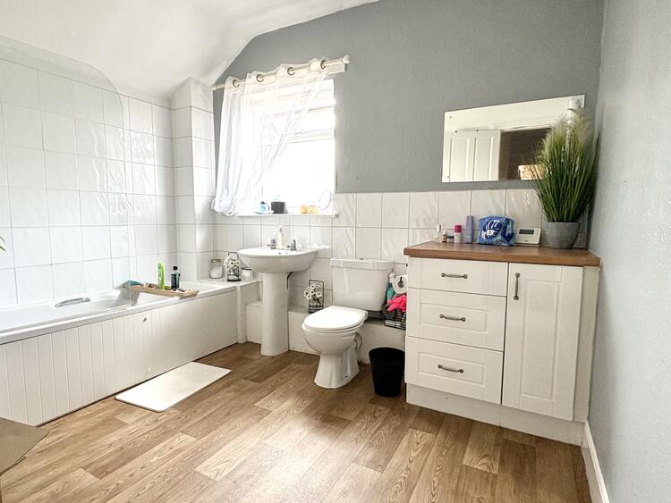 Constructed of traditional brick set beneath a pitched tiled roof with replacement roof clad, the uPVC double glazed and gas centrally heated living accommodation in brief comprises of lounge, inner lobby with understairs storage, separate dining room with enclosed stairs and fitted kitchen with open pantry off. To the first floor passaged landing there are two larger than average double bedrooms with a spacious bathroom having three piece suite in white with shower. Bedroom one could be divided into two smaller bedrooms, subject to building regulations.