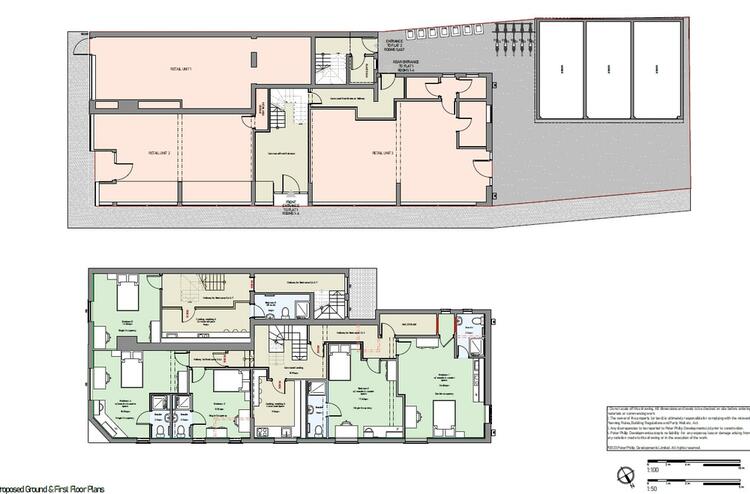 The premises benefit from full planning consent for the creation of 3 retail units to the ground floor and two residential units above (4 bed and a 3 bed apartment). We feel these could operate as an HMO although this may be subject to additional planning requirements and or licence.